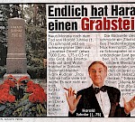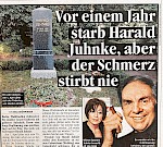 Im Jahre 2006 entwarfen wir den Grabstein für Harald Juhnke, der im Jahre 2005 mit 75 Jahren verstarb. Das Grabdenkmal aus Lausitzer Granit schmückt auf der Rückseite ein Zitat von Max Reinhardt "Der wahre Schauspieler ist von der unbändigen Lust getrieben, sich unaufhörlich in andere Menschen zu verwandeln, um in den anderen am Ende sich selbst zu entdecken".